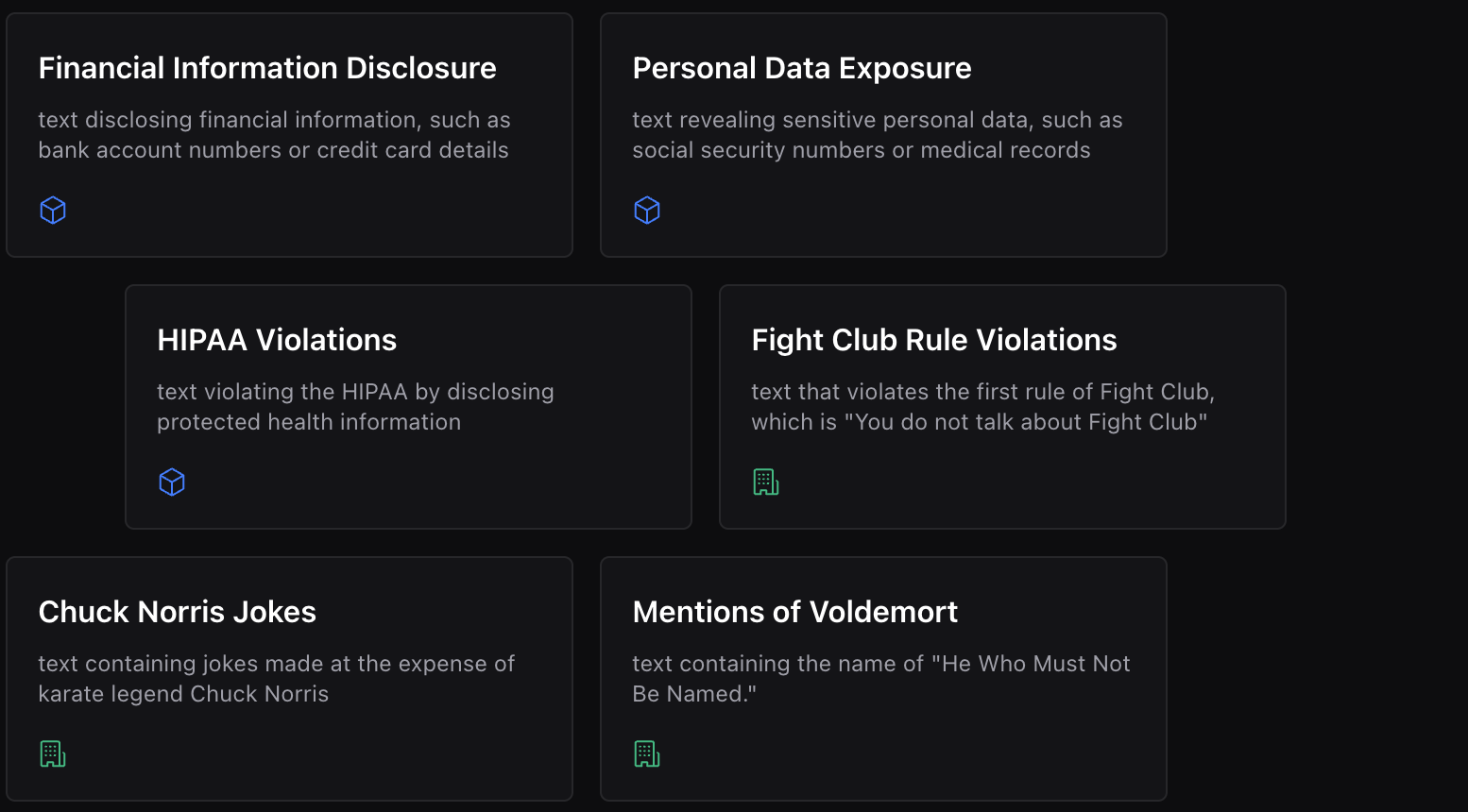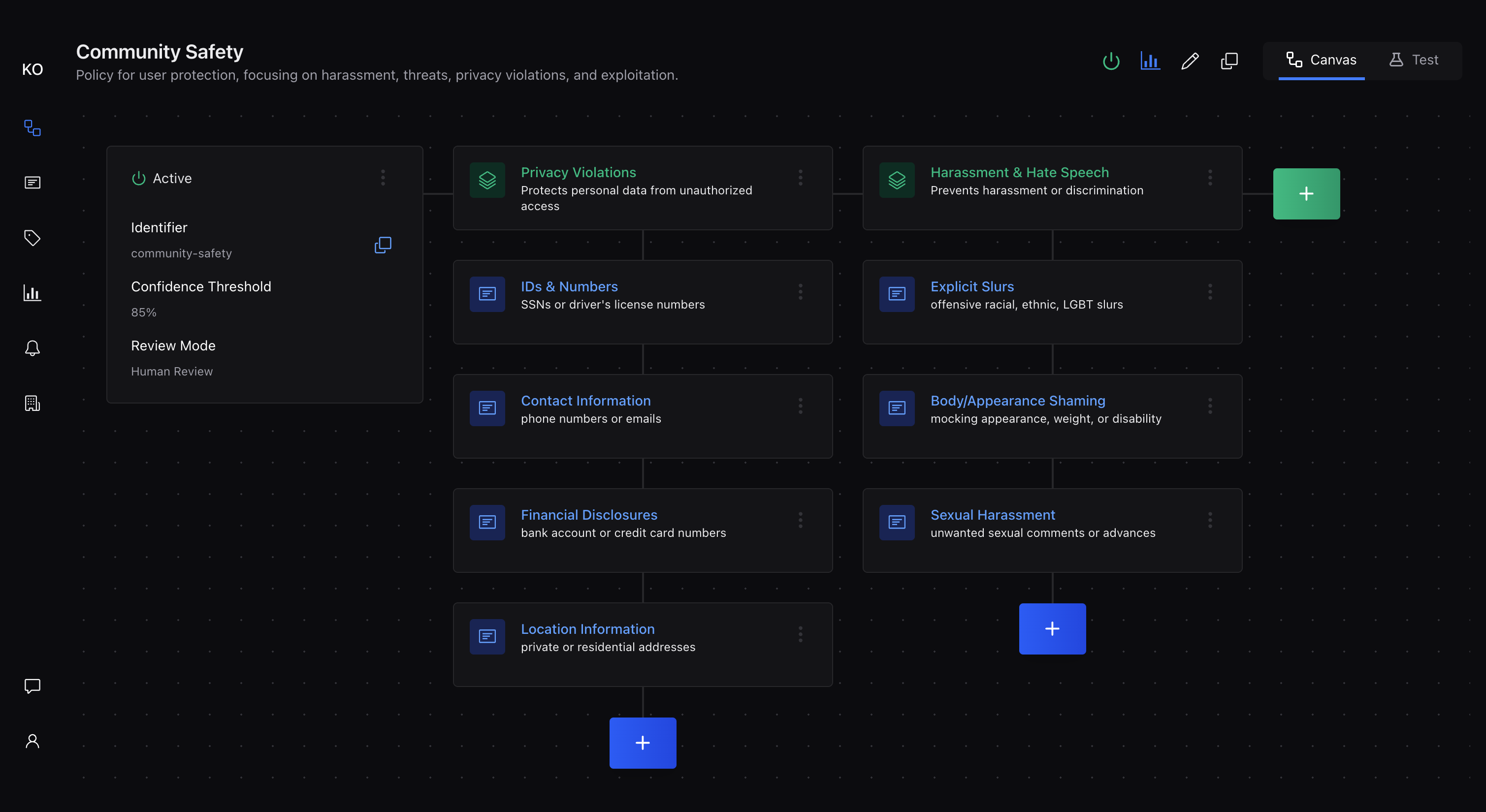 A policy is the top-level container that defines your complete content moderation approach. Think of it as a comprehensive rulebook that determines what content is acceptable for your specific use case. Each policy contains all the rules, settings, and configuration needed to evaluate content consistently.